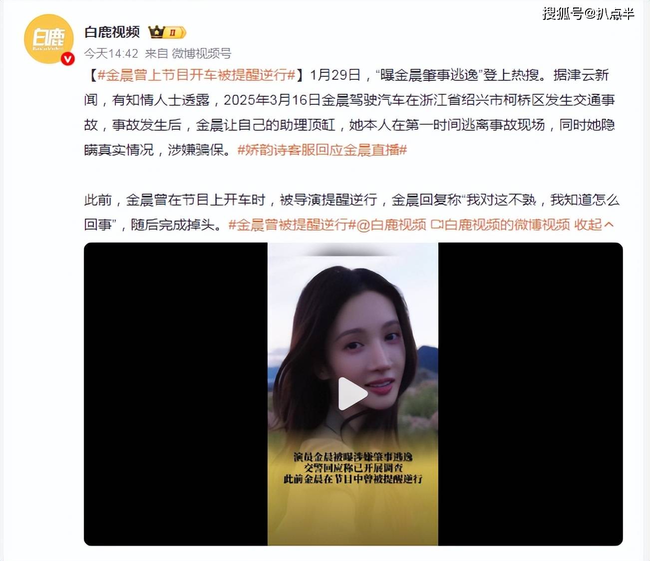 1月底,当红90花『金晨』因深陷肇事逃逸争议,冲上热搜,引发舆论风暴。