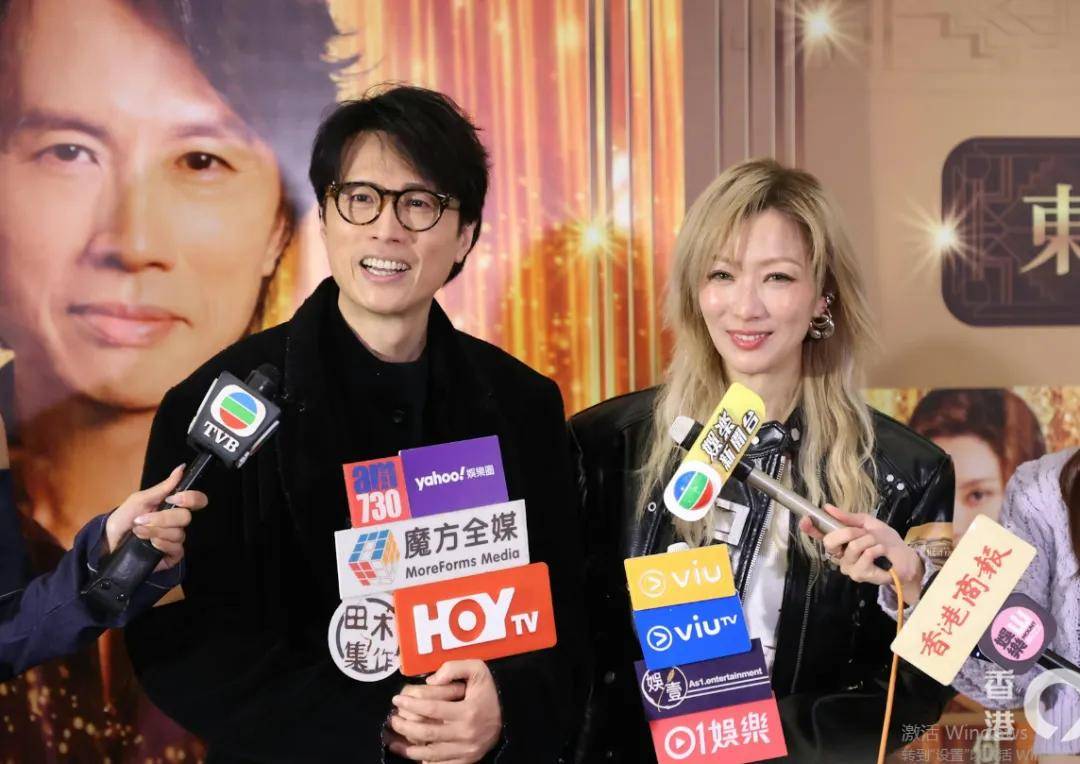 黃子華與鄭秀文於「東日步步高陞枚王爭霸戰」上接受傳媒訪問。(葉志明 攝)