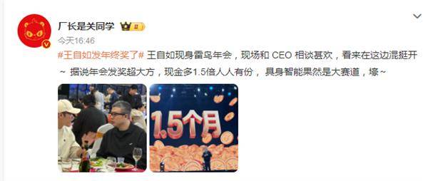 快科技1月31日消息,近日,有网友晒出王自如现身雷鸟公司年会发奖的画面,豪气操作直接刷屏。