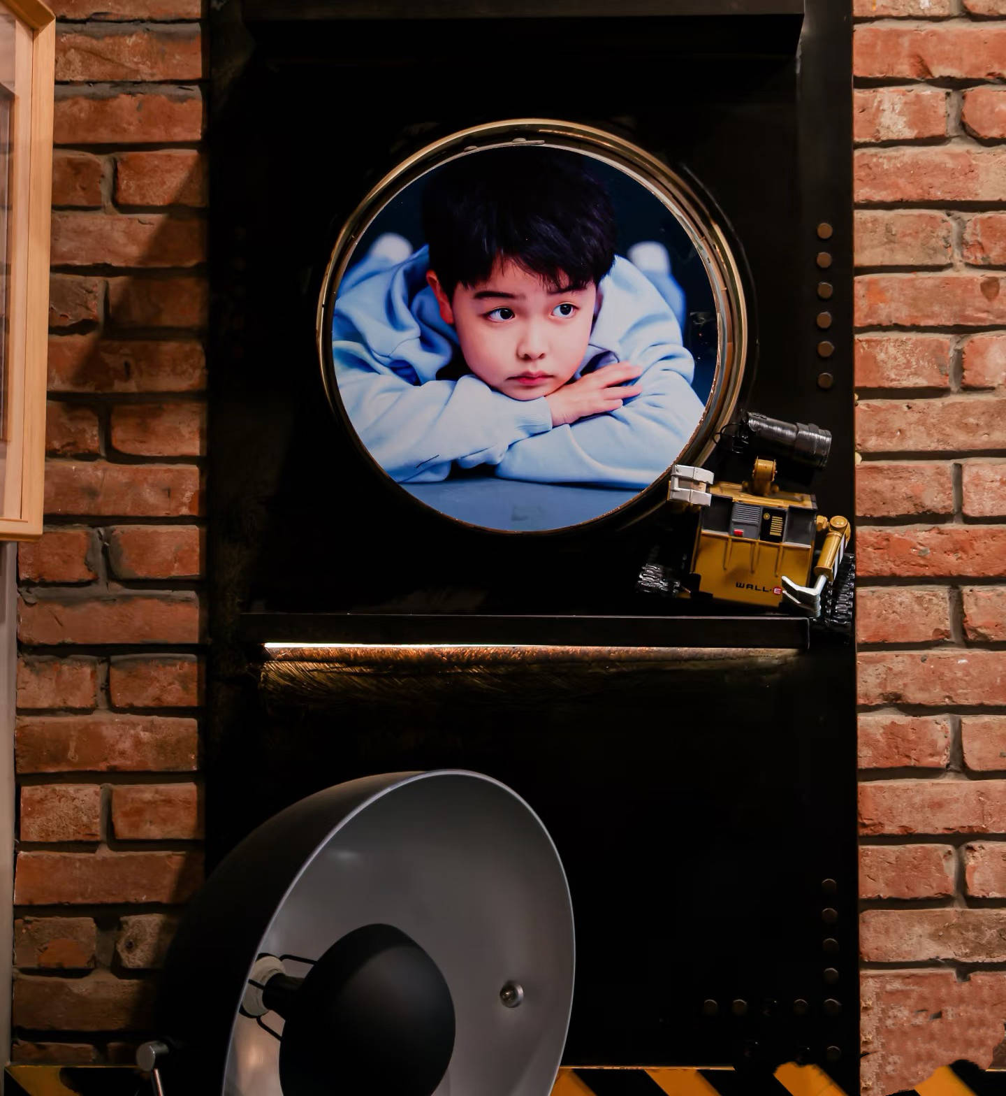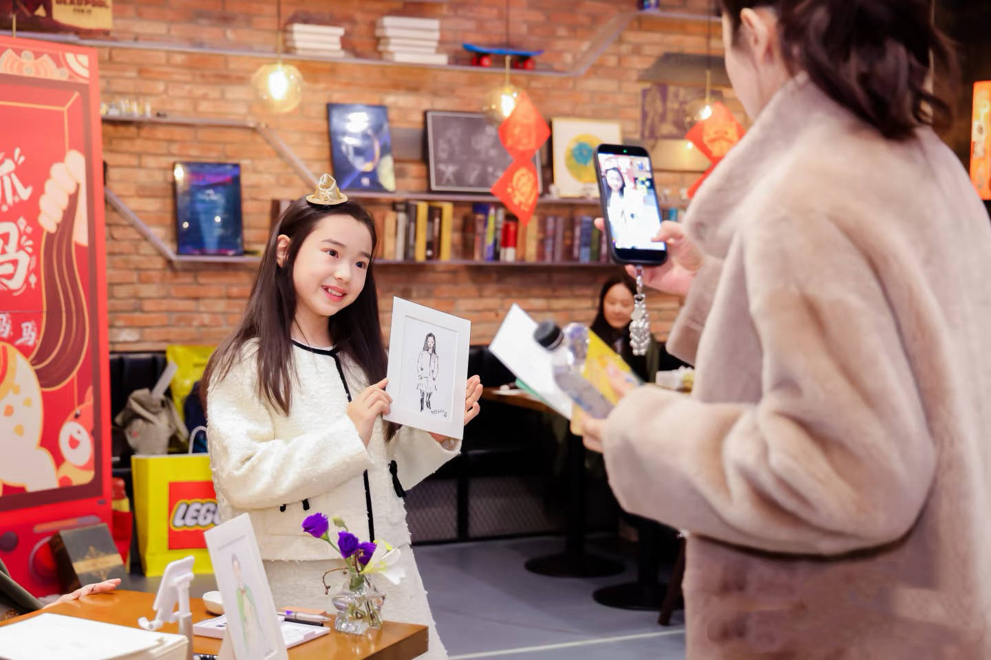 小酒窝还拿着自己画的自画像拍照,头上戴了个小小的皇冠,对着镜头笑得眼睛都眯成一条缝了!