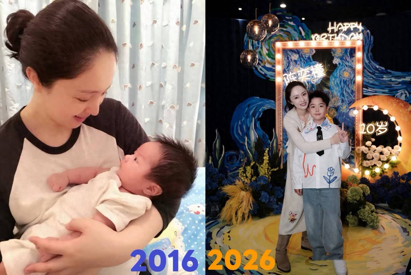 『董璇』还特意翻出 10 年前的老照片,那时候她还抱着襁褓里的朵朵,肚子里正怀着小酒窝呢!