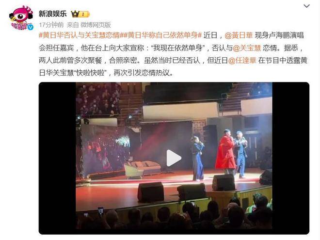 1月30日报道,黄日华最近在卢海鹏鸣金收咪演唱会上亮相,他一身休闲棒球外套🧥,精神焕发,看起来状态极佳。然而,他一开口,并非如观众预期那样开唱,而是以一种十分震撼的方式,亲自为自己澄清了多年来的传闻。在台下逾千观众的注视下,他毫不犹豫地说道:终于有机会讲清楚,目前我依然单身!这一番话,几乎可以说是彻底为流传多年的华慧恋划上了一个大大的句号。