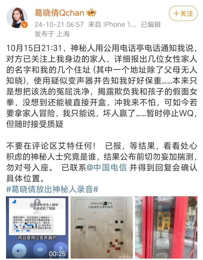 近期,演员『张雨绮』再次成为网络舆论的焦点,背后的风波牵扯到了她的家庭、孩子,甚至婚姻。2024年10月,葛晓倩首次公开爆料,称自己接到了两名神秘人的电话,警告⚠️她一些事情。最初,许多人认为这不过是一些极端黑粉的恶作剧,或者某种黑道式的威胁。毕竟,在『娱乐圈』️这个名利场,几乎见惯了为了掩盖真相而采取的各种不正当手段。谁能想到,事情的发展竟远远超出了我们的想象。