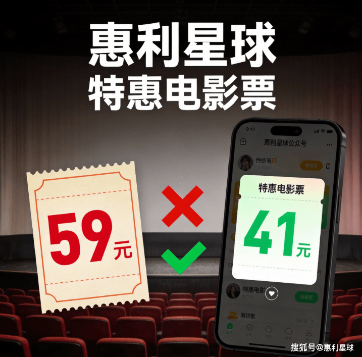 看到了吗?通过惠利星球跳转到最优购票渠道,只要41元,比猫眼直接买便宜了8元,相当于一杯奶茶钱!