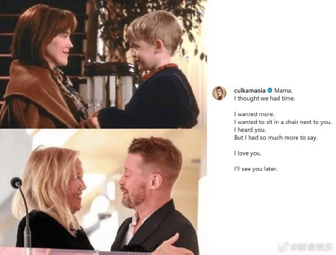 《小鬼当家》主演、在片中与奥哈拉饰演母子的麦考利·卡尔金发文+分享旧照悼念她:“妈妈,我本以为我们还有时间。我想要更多,我想要在你身边的椅子上坐下。我听到了你的话,但我还有很多话想对你说。我爱你,咱们回头见。”