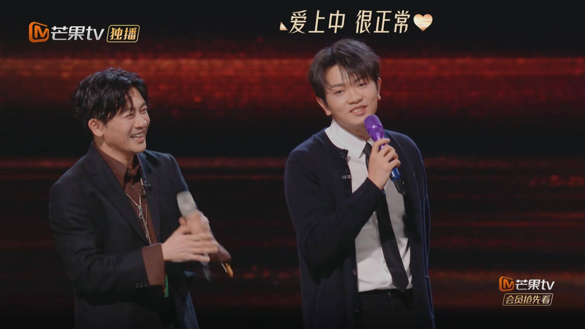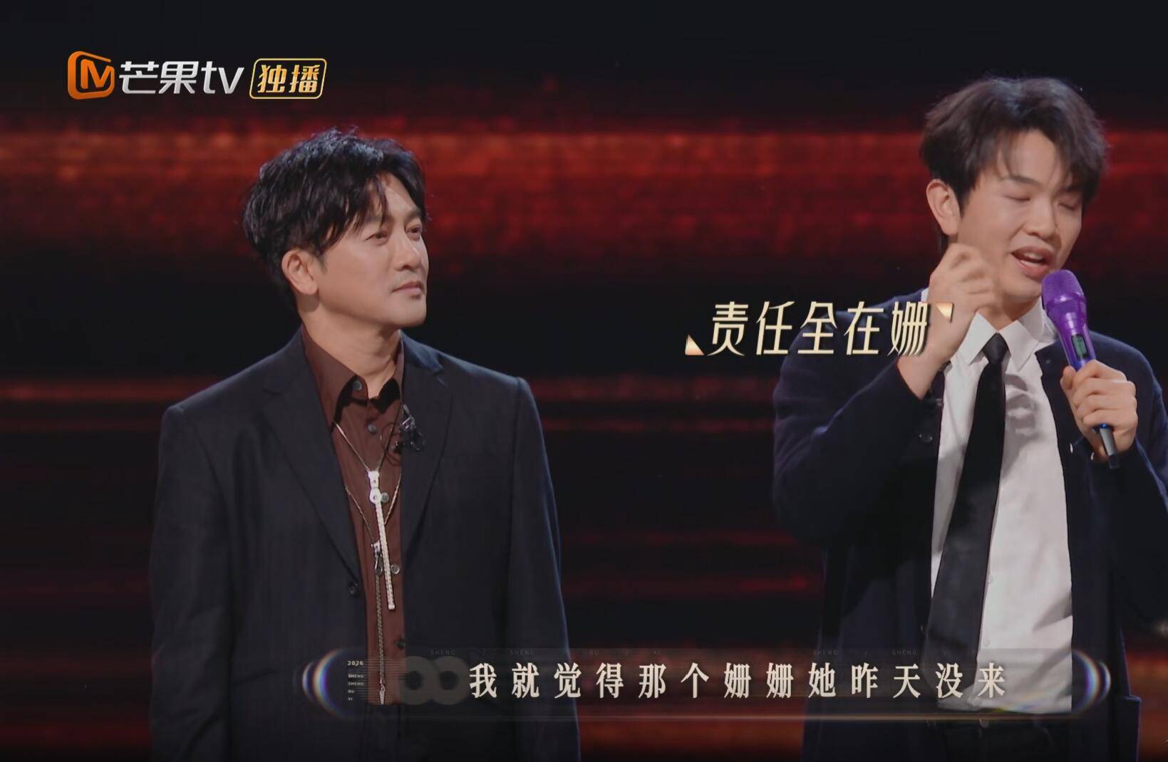 在这次的舞台上,颜人中和苏有朋合作了《姗姗》。