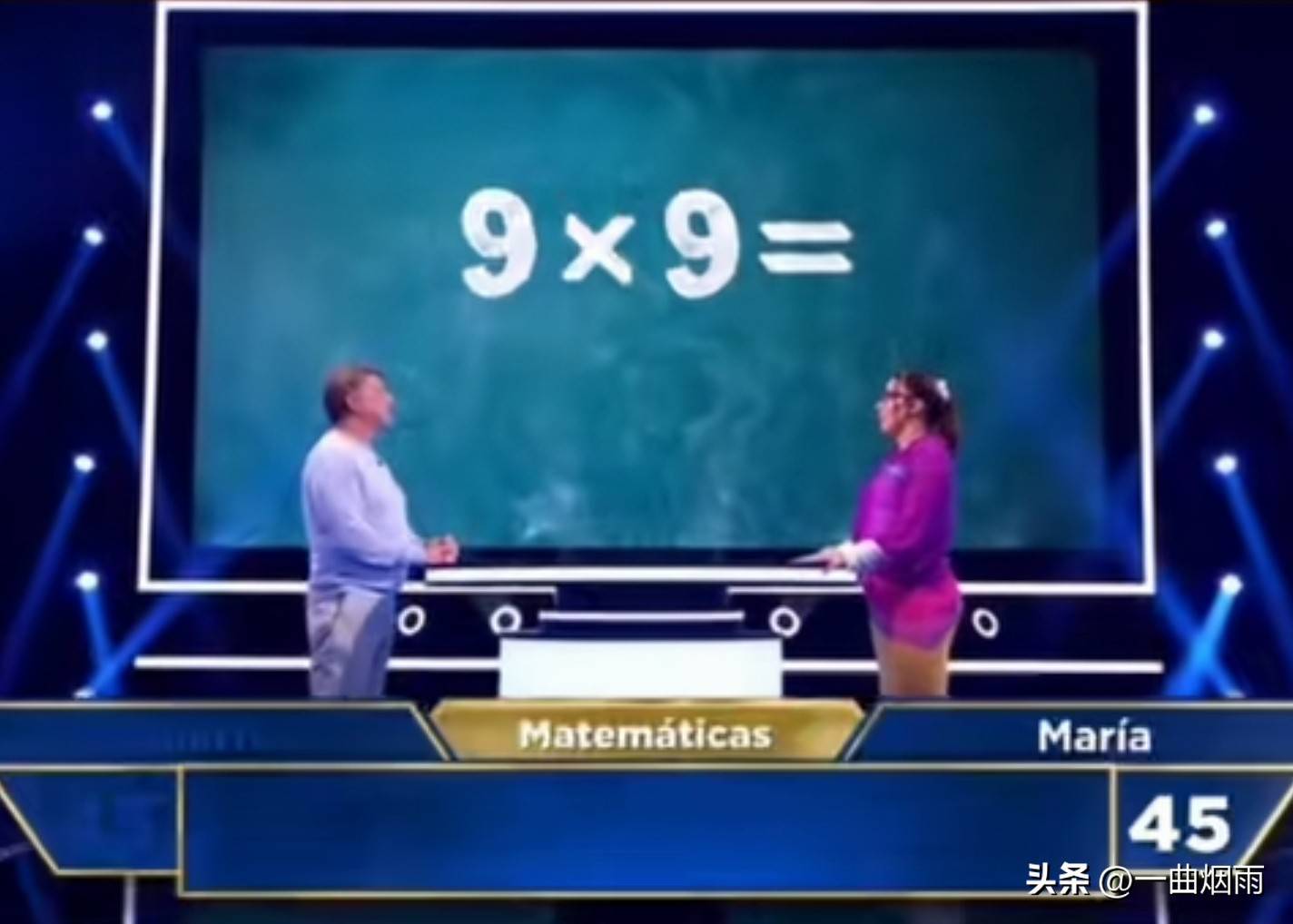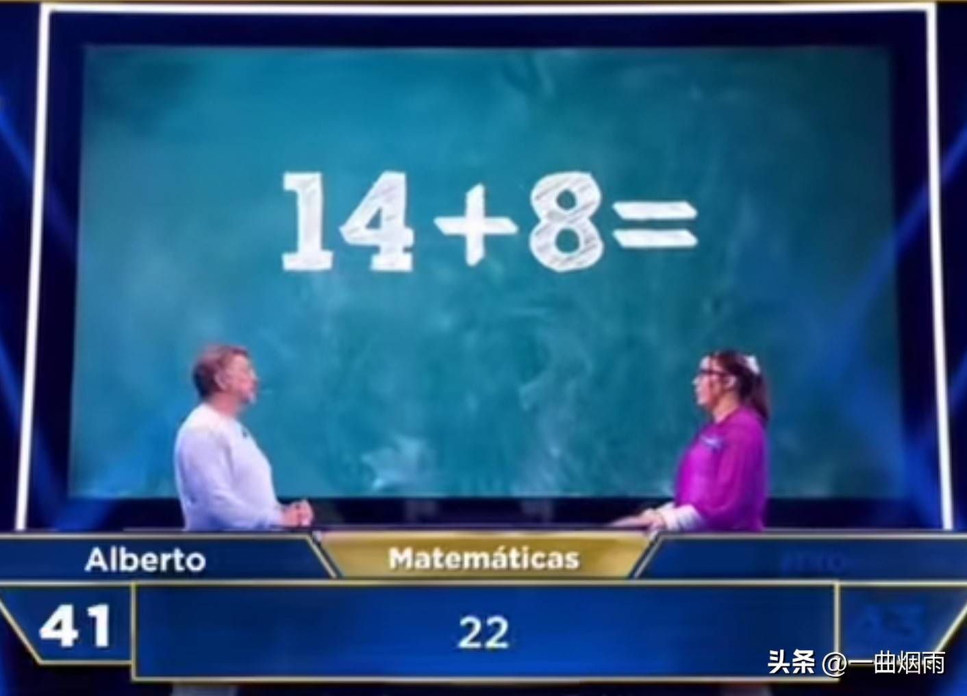娱乐fjmyhfvclm2阅读 西班牙的一档数学PK节目,简直让中国网友目瞪口呆。原因很简单,节目中的题目看起来像是小学入学测试的难度,随便找一个中国的小学生过去,估计就能轻松拿下冠军,奖品拿到手软。看看这些题目,你能相信这是在电视节目中出现的吗,而不是在小学三年级的数学比赛现场?12+5、9x9、14+8、15x2、33+11、21+13、26-5、93-3……这些题目看起来是不是很简单?