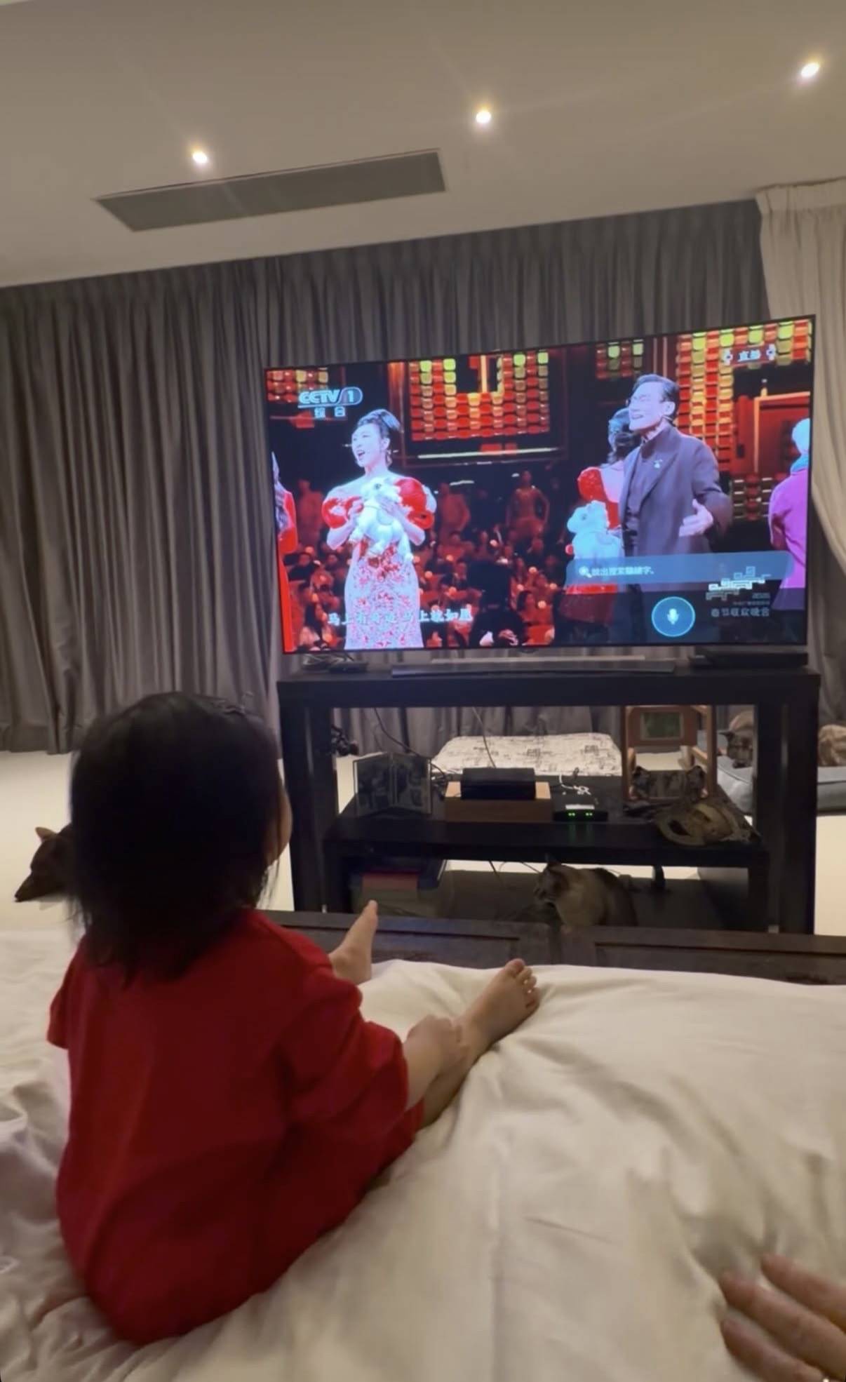 而小女儿梁静曦也在做着类似的事情。她和外国丈夫带着不到一岁的儿子,同样坐在电视前看春晚。当看到梁家辉的节目时,梁静曦立刻拿起手机,记录下儿子目不转睛地看着外公演出的瞬间。虽然梁静曦的儿子还不满一岁,但他已经对电视产生了浓厚的兴趣,尤其是在看到外公唱歌时,他盯着屏幕一动不动,显然对这个电视上的外公产生了浓厚的好奇心。