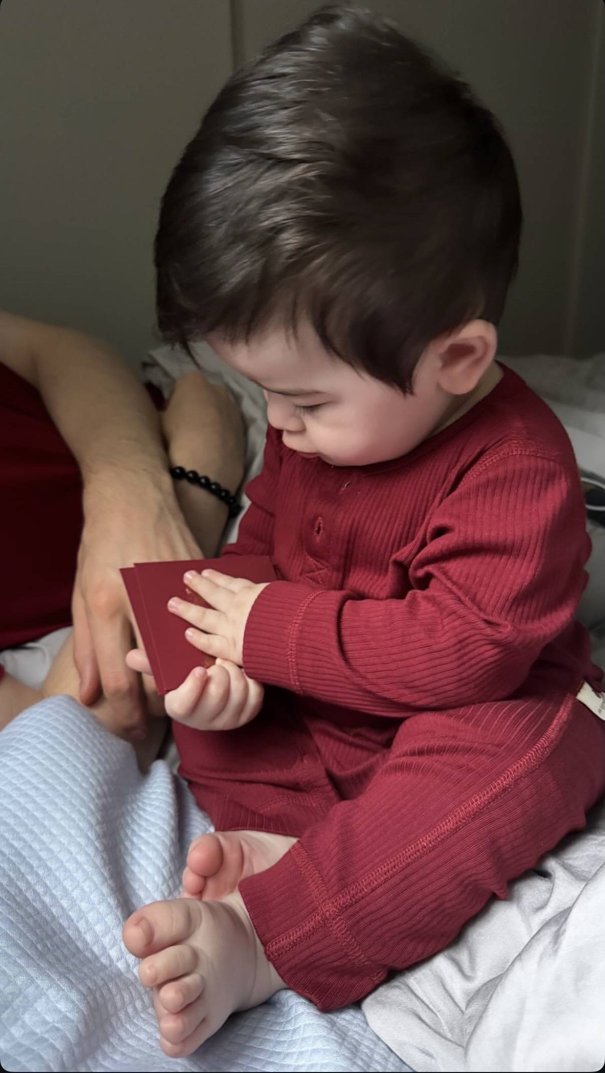 这是梁静曦的儿子出生后的第一个农历新年,梁静曦根据传统为儿子穿上了红色的衣服,寓意着新年的喜庆。这个混血儿子长得帅气可爱,虽然还不懂事,但他对电视里的画面充满了好奇,尤其是在看到外公演出时,他的眼睛紧紧跟随,目不转睛地盯着电视。除了看春晚,他还收到了妈妈送给他的红包🧧,虽然不懂里面的意义,但他对红包🧧十分感兴趣,左看右看,满脸的好奇和新鲜感。梁静曦的外国丈夫也入乡随俗,穿上了红色的衣服,陪着家人一起迎接新年,一家人洋溢着幸福和喜庆,团团圆圆。