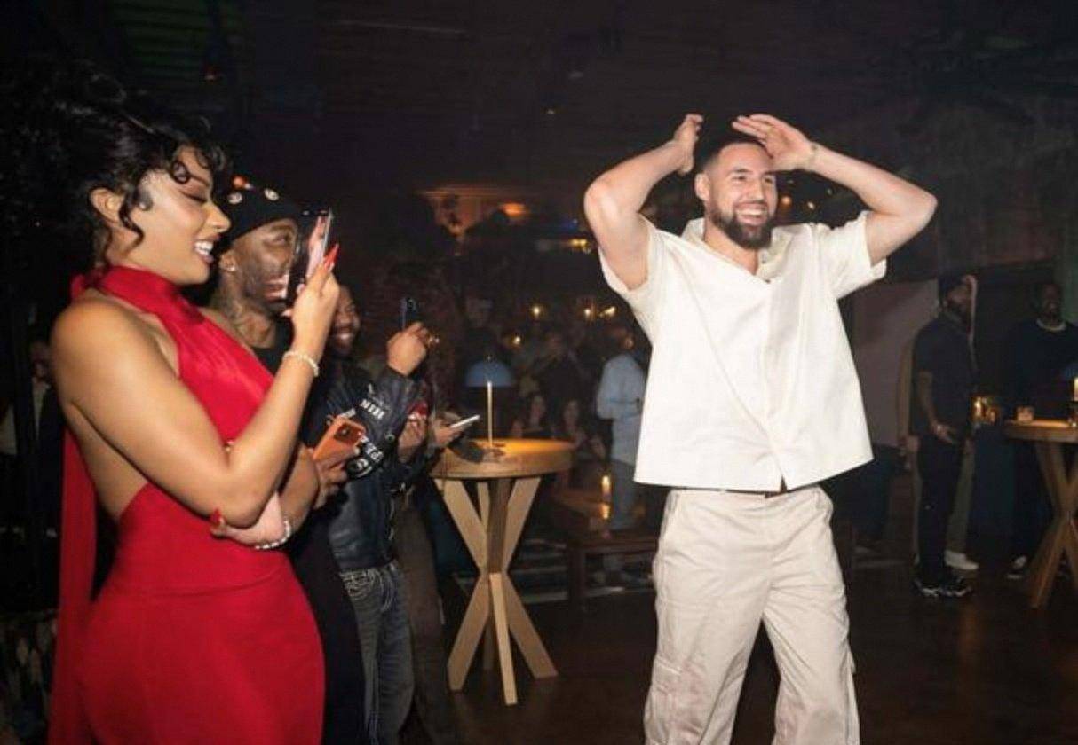 而且克莱私下真挺恋爱脑。以前在勇士被说佛系养生,现在为了女友豪掷重金定制车,还挑假期全程陪度假,宠得明目张胆。梅根回礼也用心,上周给他生日整得一点不含糊。网友调侃里肯定带点酸,谁让这跨界情侣高调又养眼。库明加最倒霉,本来安心打球,现在被cue成分身,下次训练估计被克莱盯着笑半天。
