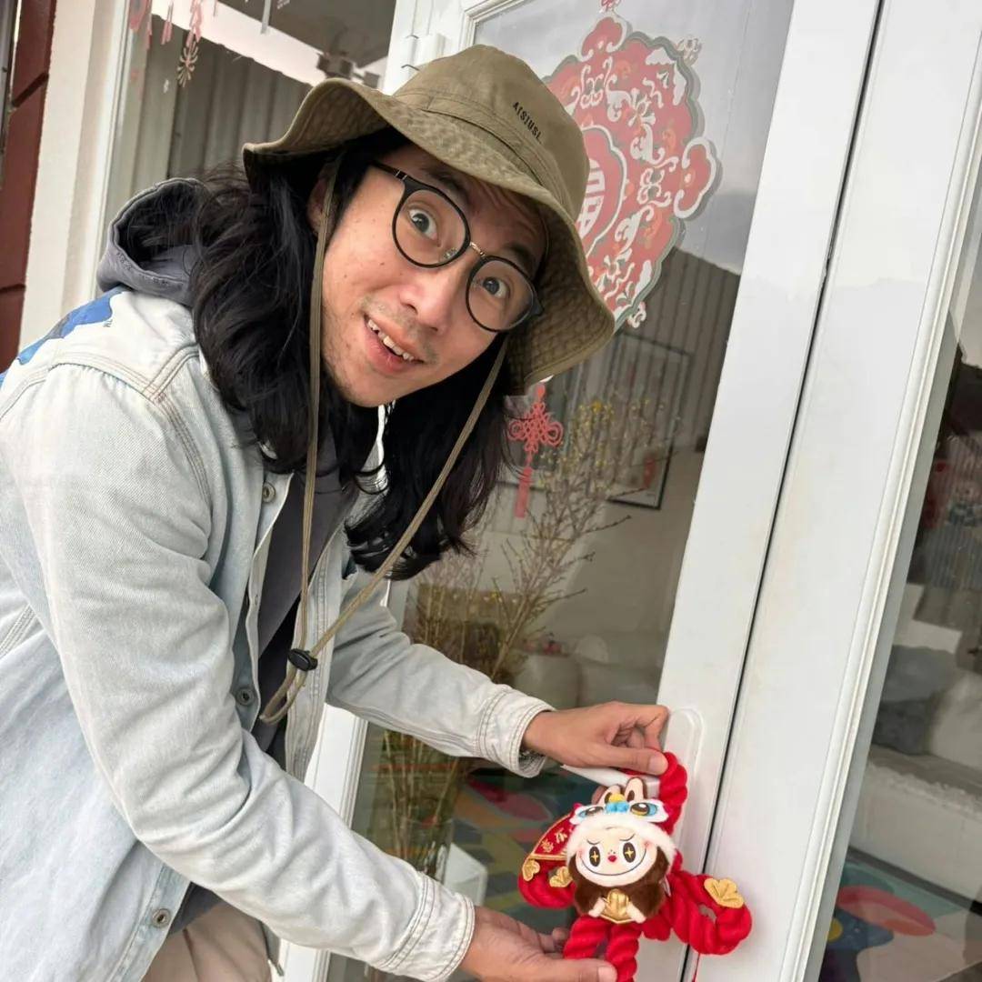 陸永將新春labubu掛在露台門的把手上。(IG@6wing_fama)