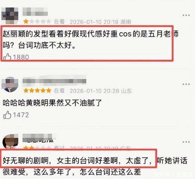 然而,『赵丽颖』饰演的李秋萍一登场,原本的期待便瞬间下降。作为一个基层干部角色,她的表演常常给人一种端架子的感觉,脱离了生活的真实感。工作中的她板正严谨尚可理解,但回到家中与父母的互动时,她依然提气亮嗓,直视前方,仿佛在开工作会议一样,完全没有家庭成员间的亲密与松弛感。即使在与男朋友吃饭时,她依旧紧张得如同接受上级考察,恋爱时的甜蜜和自然完全消失。台词部分的表现也让人出戏。在与郑德诚激烈争吵时,『黄晓明』的表演已经进入了角色,而『赵丽颖』的表演却显得过于生硬,她的语气硬而凶,却缺乏情绪波动。网友们纷纷吐槽她的台词像是在朗诵诗歌,这并不是苛责,而是对她表演缺乏情感温度的真实反应。