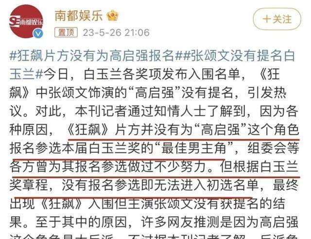狂飙》中的出色表现,『张颂文』无疑会在今年的奖项中大放异彩。然而,没想到的是,这次的白玉兰奖,却狠狠给了他和他的粉丝们一记重重的耳光。