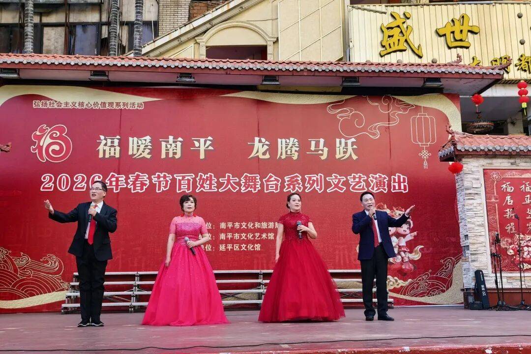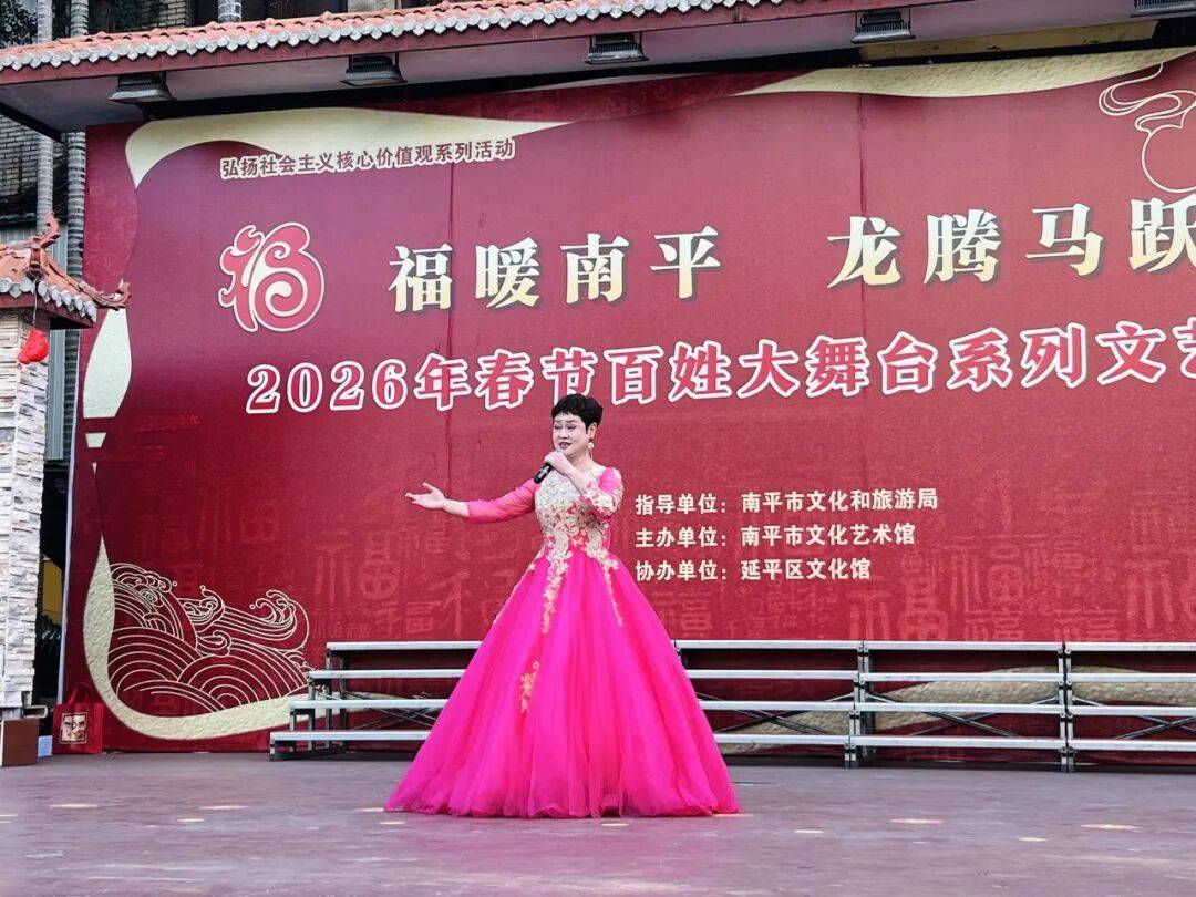 百姓大舞台作为南平市文化艺术馆品牌项目,常年免费为广大群众提供各类文艺演出和活动。春节期间“‘福暖南平・龙腾马跃’2026 年春节百姓大舞台系列文艺演出”还将继续上演,南平市文化艺术馆将持续以多元文艺形式点亮新春舞台,用歌声与舞姿传递新春祝福,让市民在家门口邂逅文化之美,在欢歌笑语中欢度马年新春。