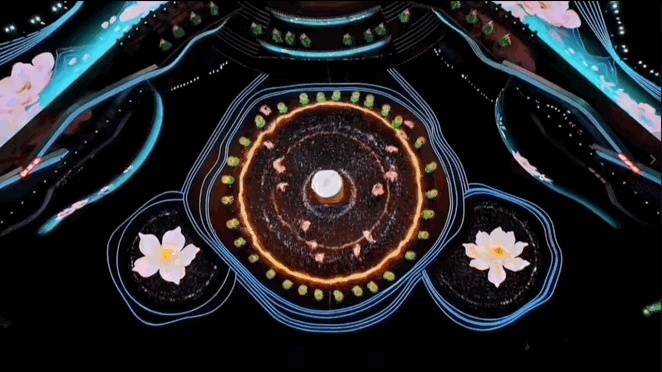 《雏凤新声》中,54个『机器人』️与水中机器鱼、飞屏技术共同构筑未来戏曲场域,百余名戏曲萌娃自在挥洒,科技化作托举传承的温暖手掌。《骅骝驰骋》借虚拟AR技术让名将与神骏的传奇腾空而至,赤兔、白龙、麒麟、乌骓四匹骏马承载马年吉祥寓意,于虚实间展现奔腾气象。