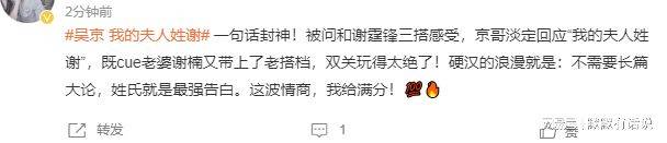 2月20日,随着『吴京』 我的夫人姓谢这一话题登上热搜,评论区一片沸腾,网友们纷纷讨论这句话的含义和背后的情感。