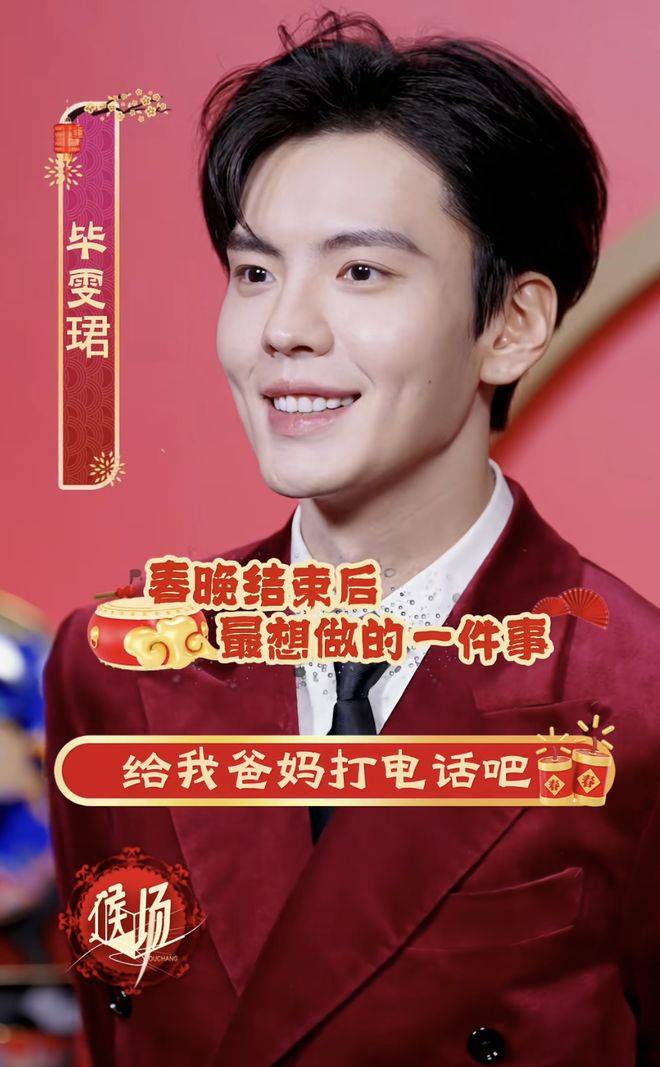 连续两年登上春晚的『张新成』,已经非常熟悉这一舞台,谈到自己的心得体会,他首先提到的是亲切。当天他身穿一套酒红色的中式礼服,端正立挺,尽显绅士风范。但可能是因为休息不够,『张新成』看起来略显憔悴,尽管他年仅27岁,但眼部状态显得有些疲态。