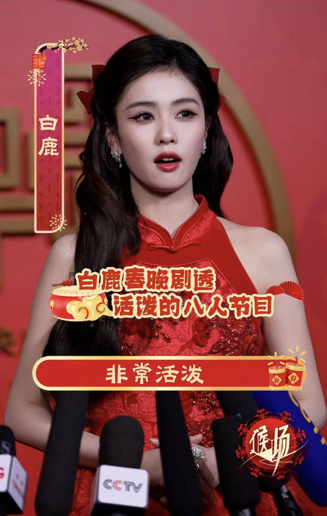 『白鹿』近几年可谓是势如破竹,今年她再度登上春晚的舞台。在采访中,她透露,今年她的节目将由四男四女的演员组成,演绎一场青春有活力的跨界组合,主打美丽养眼。身穿一袭红装的『白鹿』,连打光师都忍不住偏爱她。央视的镜头下,她的皮肤白皙如瓷,『妆容』艳丽,仿佛散发着一种明艳的光彩。