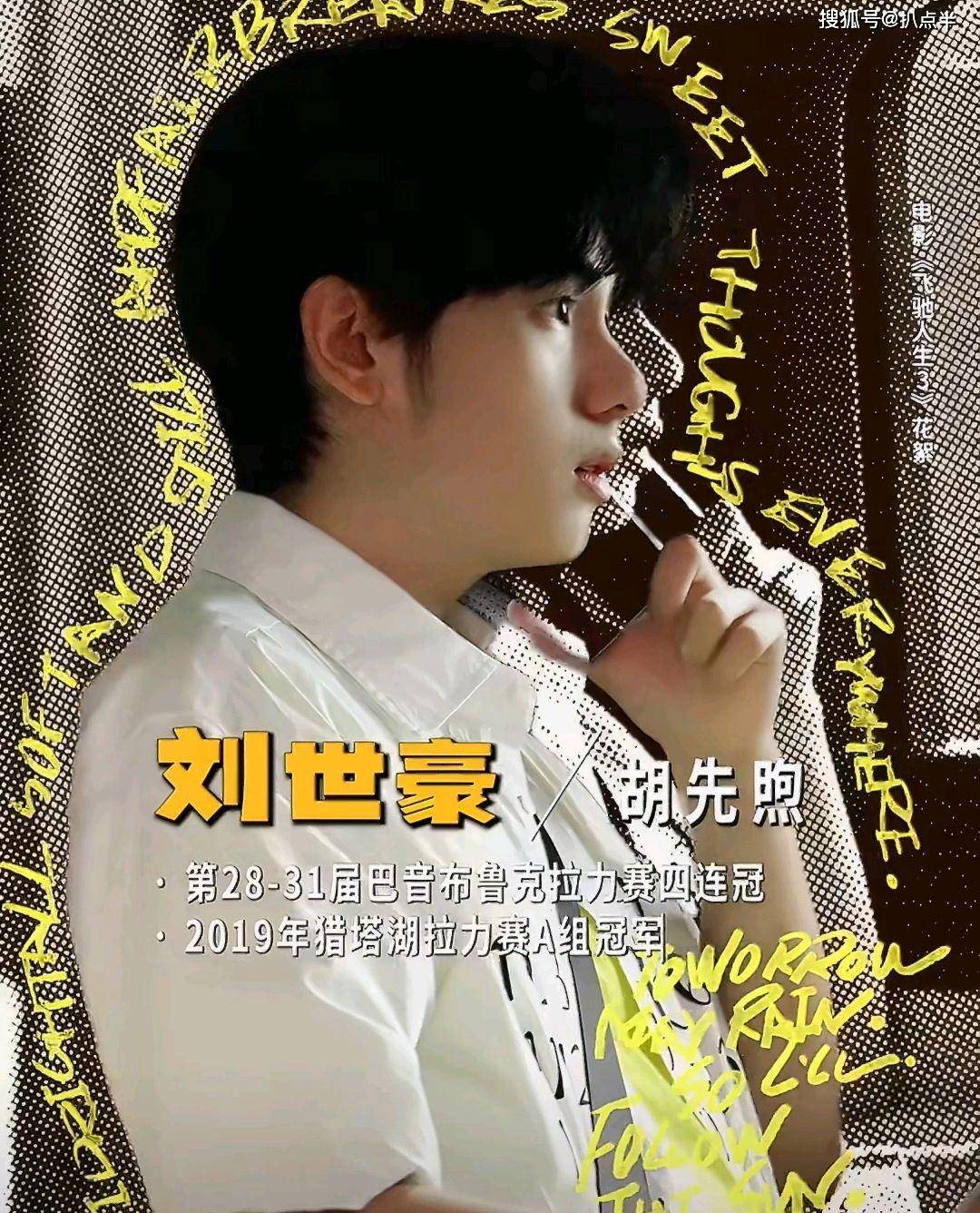 直至在《飞驰人生3》中,他演的刘世豪也是意气风发的少年形象,作为巴音布鲁克赛道的四连冠顶尖车手,被誉为“四冠王”。