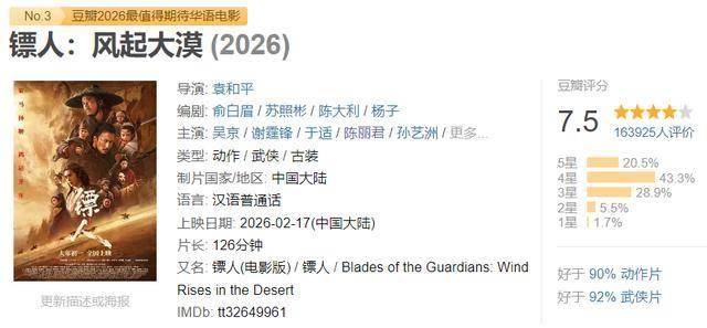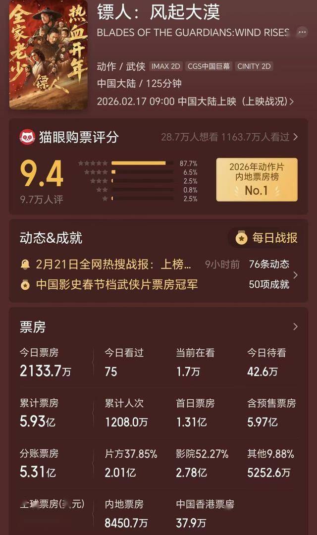 《镖人》海外口碑爆了,评分接近满分,全球总票房有望破纪录。