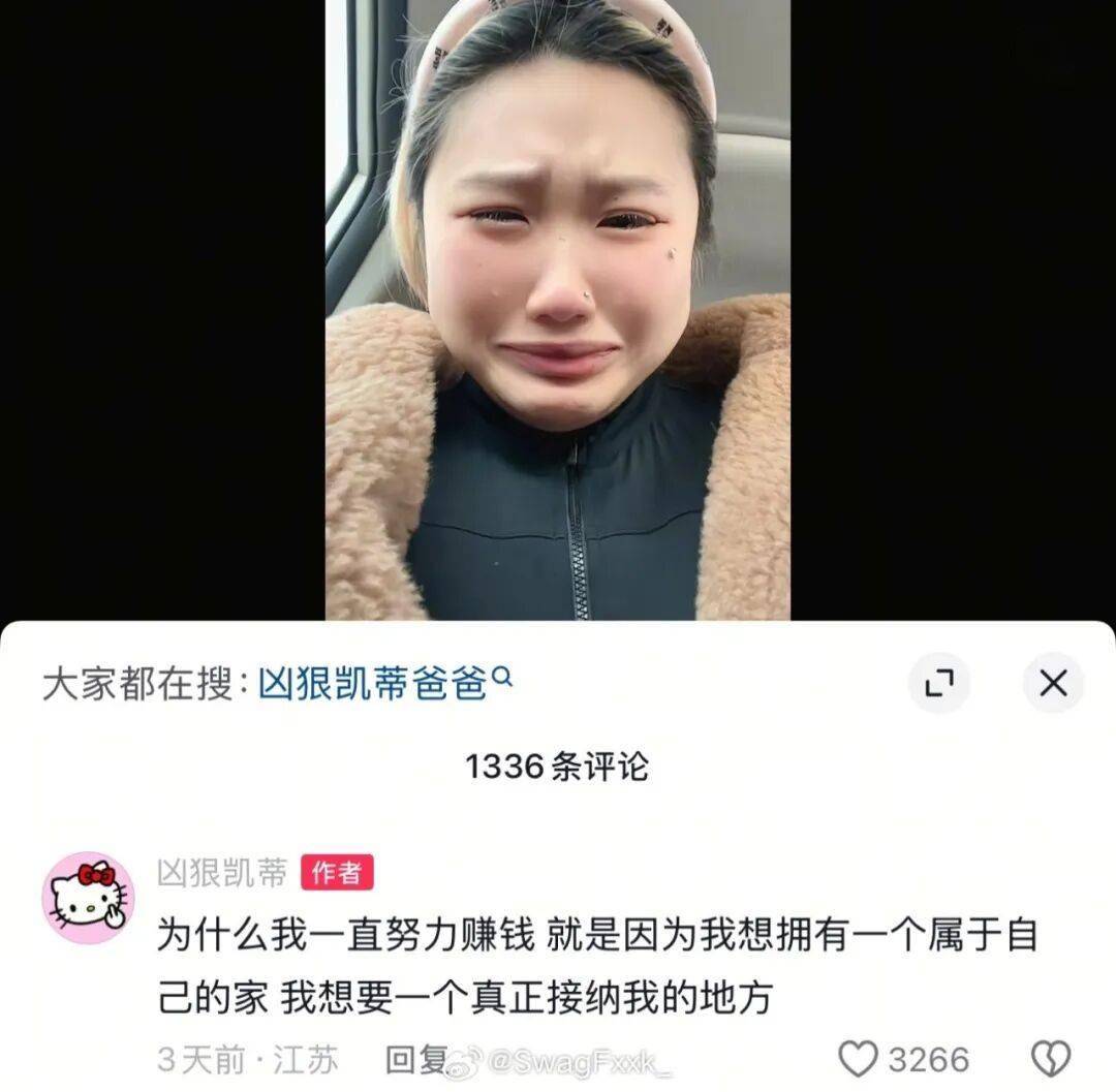 大过年的,凶狠凯蒂却晒出自己流泪视频,哭诉自己被父亲嫌弃: