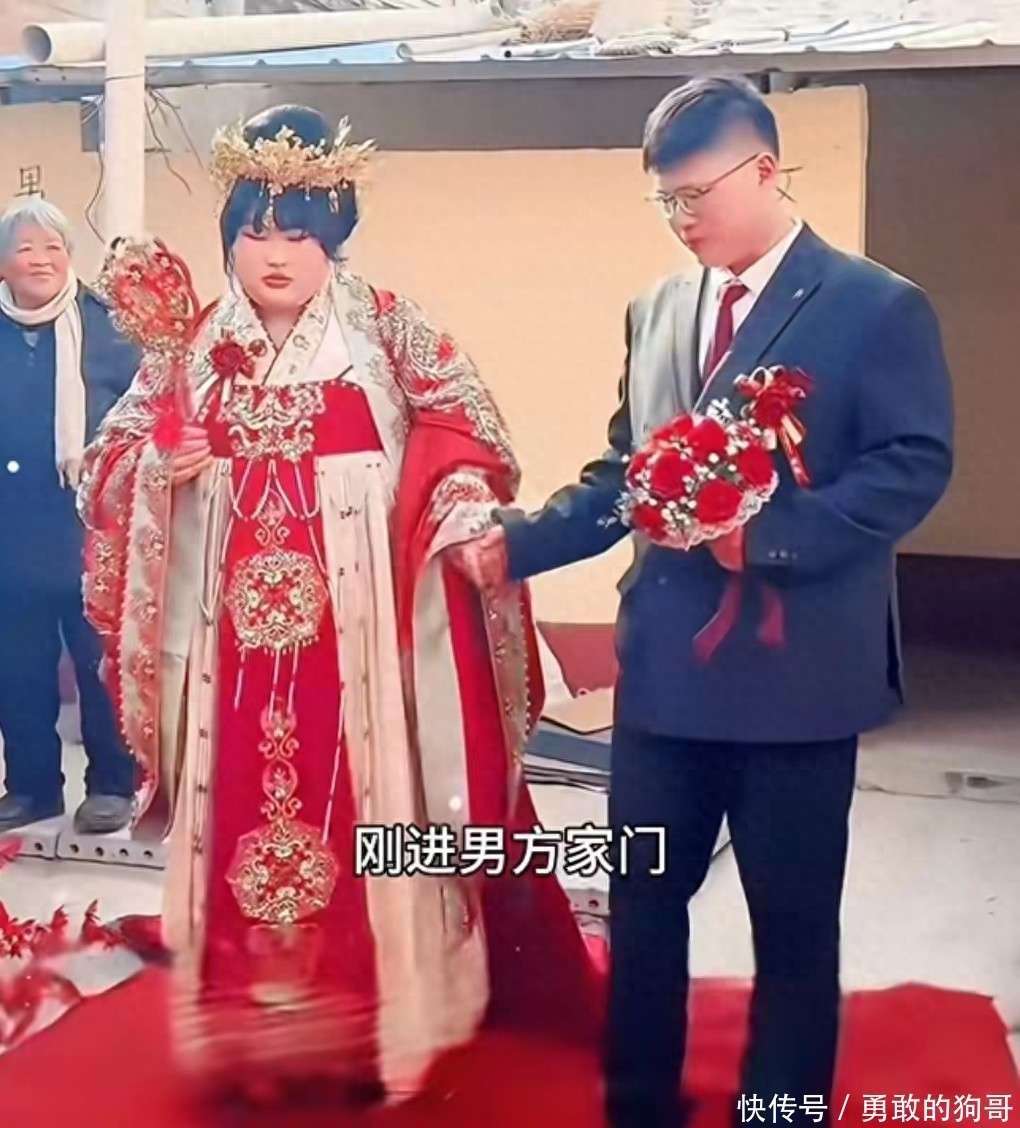 她穿着一件普通的家常衣服,头发也没特别打理,顶着有点乱的发型就进了门,完全没有摆出嫁出去的闺女那种端庄的姿态,怎么舒服怎么来。好在丈夫张海洋是个靠谱的男人,看见妻子有些不自在,立刻站出来阻止大家拍摄,还给围观的人发了喜糖,既照顾了大家的面子,又保护了妻子的情绪,做事非常周到。