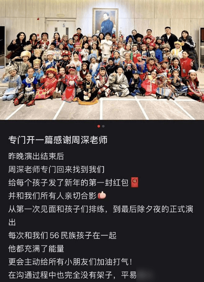 春晚刚完,收视第一,『周深』没急着走。他折返回后台,给56个伴舞的小演员,一人塞了一个100块的红包🧧。