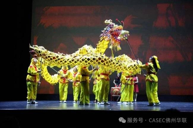 开场由佛州新星综艺团带来的民族管弦乐《喜洋洋》率先奏响年味,随即佛州华联舞龙队震撼登场,鼓点与龙影翻腾之间,将剧场的热度瞬间点燃。
