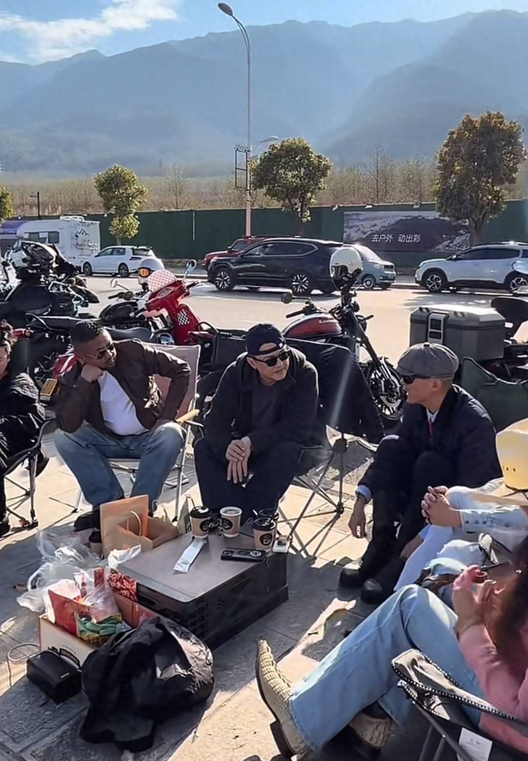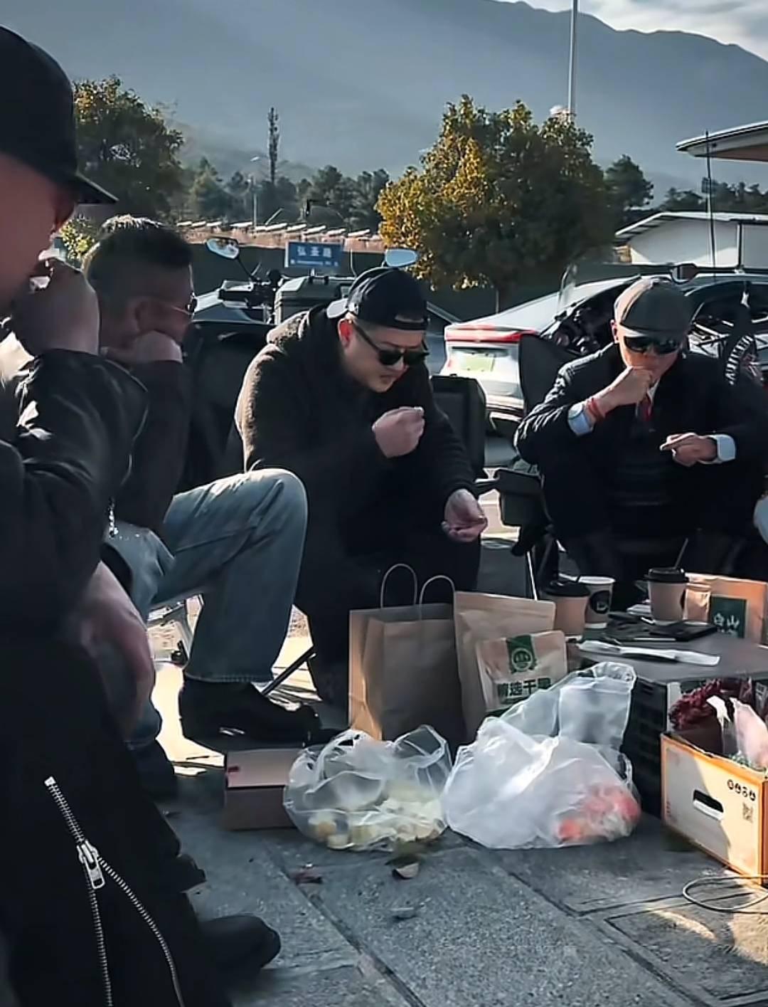 你能想象吗?一个长期被生意压力和争议围绕的人,居然能像旁边的一个普通大叔一样,坐在马路边晒太阳,旁边是大冰、铁成、小黑等人,背后停着一排闪闪发亮的摩托车,仿佛是一群即将启程的浪子。有人说这种画面太奇怪,『明星』️怎能这么接地气呢?但换个角度想,马路边才是最不需要伪装的地方,没人要求你表演,只有最真实的自己。