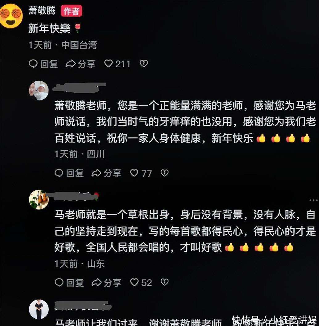 本以为这件事就此作罢,没想到马健涛的粉丝们直接炸开了锅,开启了全方位的围攻模式。节目播出后,粉丝们纷纷涌到萧敬腾的『抖音』账号下,感谢他为马健涛出头,甚至有粉丝自豪地表示:是马老师让我们来的!