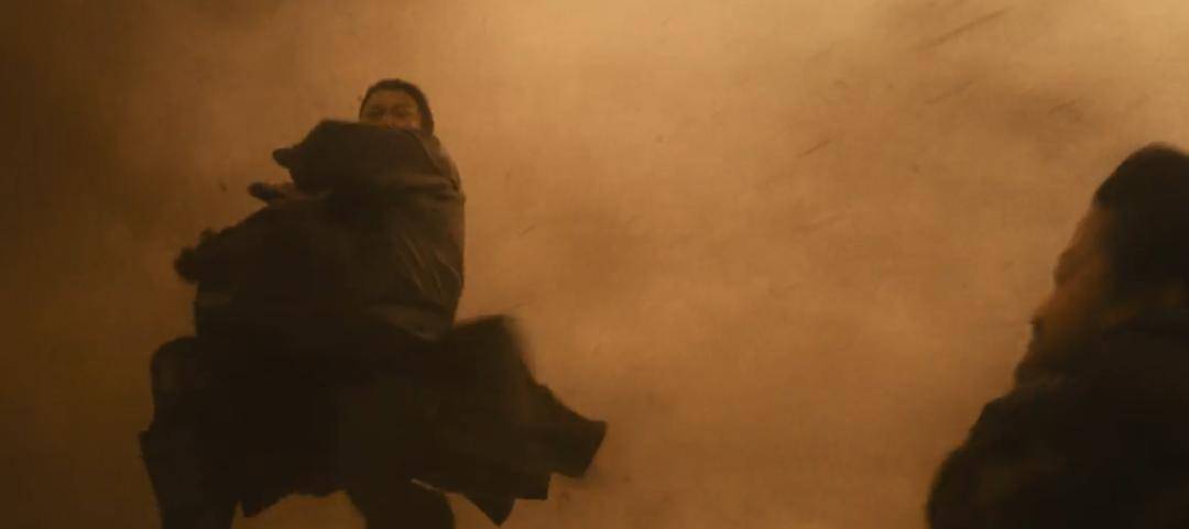 这场戏发生在随后的一场突如其来的沙尘暴里,大沙暴里能见度降到几乎为零。