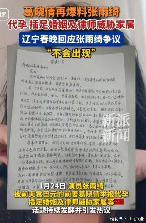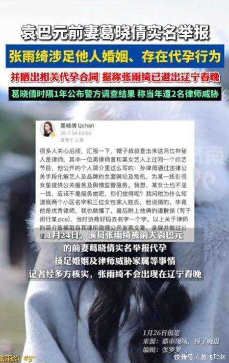 2026年1月24日,『张雨绮』的前夫袁巴元的前妻葛晓倩,突然以近乎对簿公堂的姿态,在『社交平台』实名举报『张雨绮』。其实,这并不是葛晓倩第一次揭露与『张雨绮』之间的矛盾。两人之间的恩怨早已有数年的积累,但这一次,葛晓倩显然准备充分,拿出了经过公证的护照信息、警方调查报告以及律师道歉信等一系列硬核证据,将代孕、婚姻插足以及律师威胁这三大指控彻底曝光。