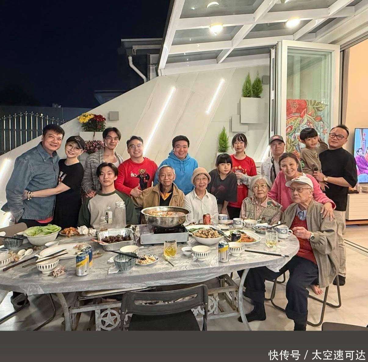 另一张合照则是在户外花园里吃火锅时拍的,人员更为齐全,钱小豪的父母也坐在了C位。老爷子穿着红色毛背心,戴着一顶白色帽子,整个人精神头十足;老太太坐在旁边,笑容温和,二老的身体看起来都特别硬朗,状态极好。尽管这张照片里的人更多,依然没有看到钱小豪夫妇的身影,大家猜测,他们大概率是因为住在广东中山,来回不便,所以未能参与此次聚会。
