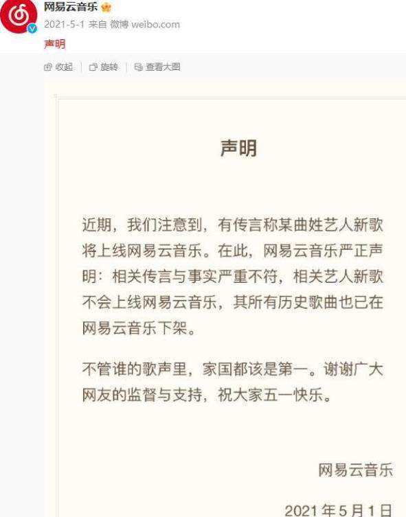 紧接着,她最引以为傲的音乐事业,也彻底崩塌了。根据澎湃新闻2026年5月1日发布的《曲婉婷劳动节宣布复出,网友不淡定了》一文报道,从2026年开始,网易云音乐等各大音乐平台,就纷纷宣布,永不上架曲婉婷的所有歌曲。