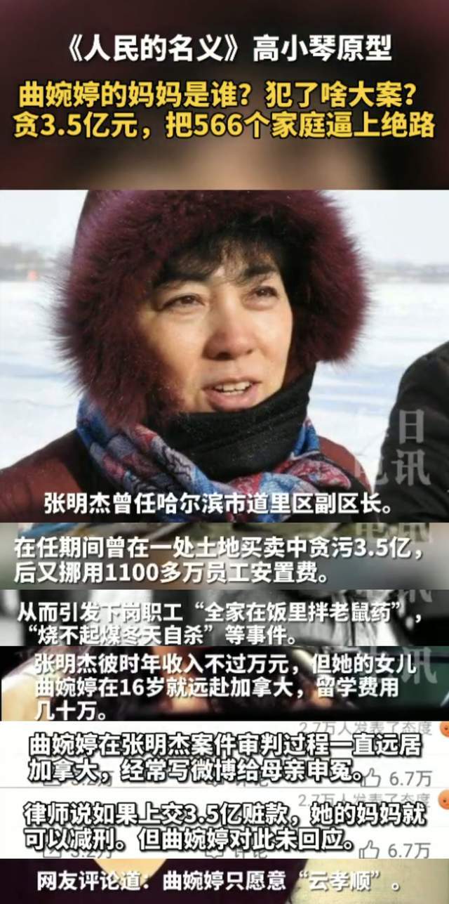 而这一切的始作俑者张明杰,却拿着贪污来的3.5亿赃款,供女儿曲婉婷在海外挥霍。那时候的曲婉婷,在加拿大住豪华别墅、开限量豪车,天天晒环球旅行的照片,还和温哥华前市长热恋,出入都是高端场合。