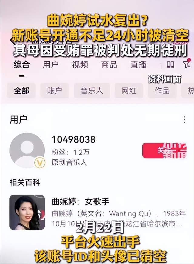 最近刷到一条消息,越看越解气——消失好久的曲婉婷,复出试水连48小时都没撑过去,一夜之间全被封号。