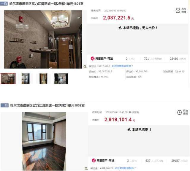 最先到来的惩罚,就是她的财产被依法处置。根据央视网2023年6月4日的报道,曲婉婷名下位于哈尔滨市道裏区富力江湾新城的两处涉案房产,被依法强制拍卖。其中一套148.76平的房子,经过86次出价,最终以219.97万成交,另一套172.77平的房子,以291.91万成交。