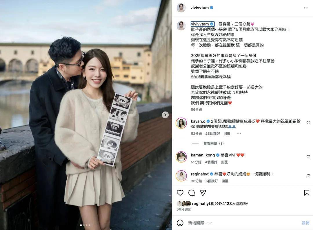 譚嘉儀宣布懷雙胞胎。(IG@vivivvtam)
