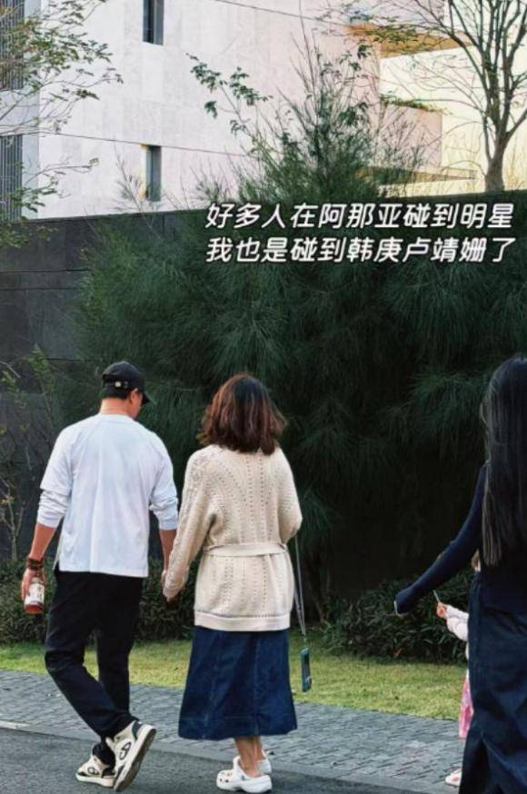 偶遇的网友说,本来下楼去超市远远看着几个人走过来,快到身边才认出来是韩庚和卢靖姗!