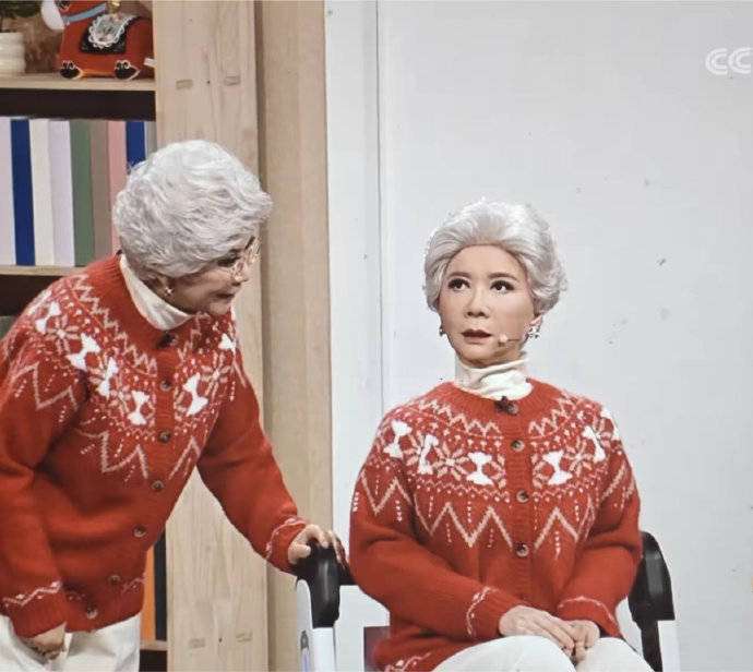 今年春晚的舞台上,最令人目瞪口呆的场景,非蔡明老师与另一个自己同台的那一幕莫属。那一刻,当身着红色唐装的仿生『机器人』️推着轮椅缓缓登场时,就连蔡明自己也情不自禁伸手去摸了摸它的脸——那皮肤的质感,细腻到毛孔级别;那表情,生动得仿佛能挑眉、撇嘴,配上她标志性的魔性笑声哈哈哈哈哈,这一切竟然如此逼真,几乎让人分不清哪个才是真正的蔡明。与此同时,弹幕刷爆了屏幕,满是疑问:到底哪个才是真的蔡明?