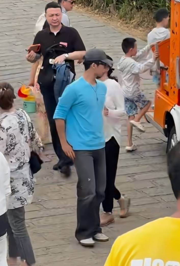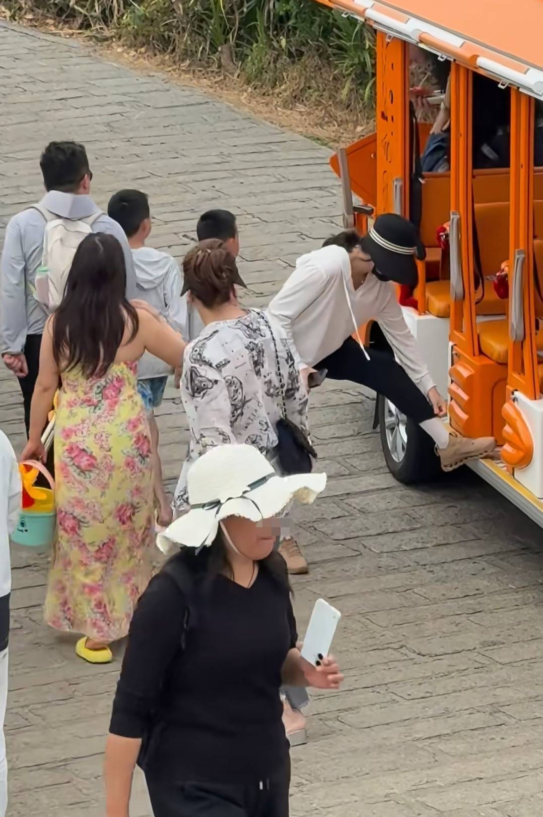 有人说在蜈支洲岛看见一个“全副武装的白衣黑裤”,帽檐压得低到快贴眉毛,口罩戴得严到只剩一双眼睛。朋友问了一句:“是她吗?”旁边人回:“你看她身后那一米八的男孩,像在替谁挡镜头。”