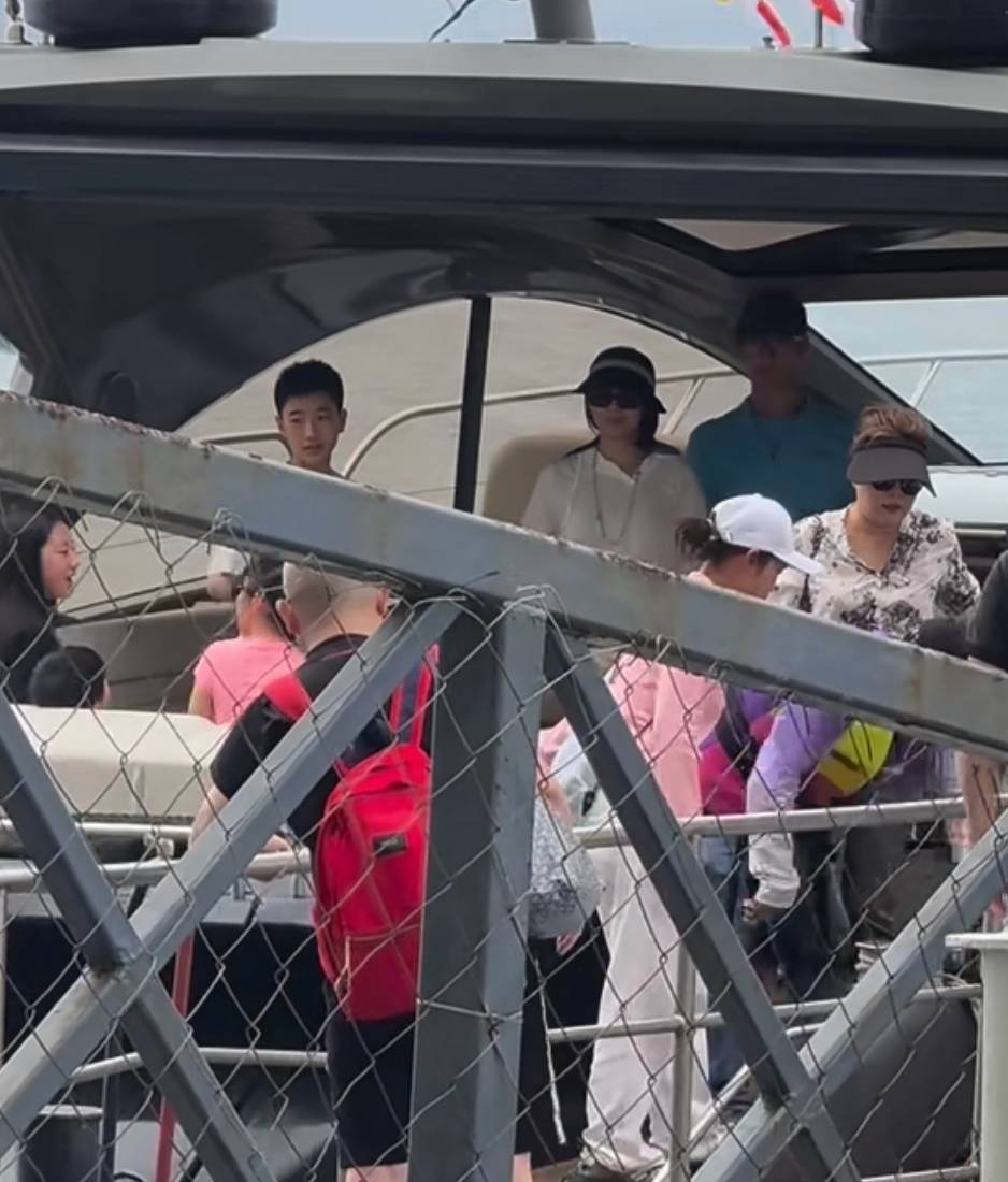 她带的不是“二人世界”,是“家族旅行”。孩子、亲戚、朋友,一船十来口人,热闹得像春节回老家吃席。她身边那位蓝T恤的高个男孩,被人误认成别的『明星』️,说明啥?说明人家确实长得精神,身高也确实顶。