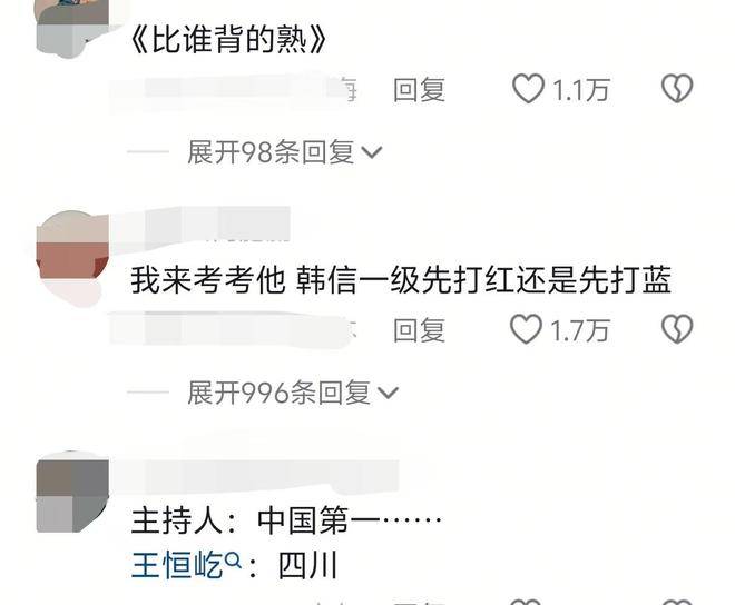 尤其是在答题环节,王恒屹答题的速度之快让人吃惊。主持人刚念到题目的一部分,他便已答出完整的答案。于是,一些人开始猜测他是否有走后门的嫌疑,是否题目提前泄露过。但其实,节目组的安排并不如他们想象的那般简单。知情人士透露,现场是通过大屏幕展示题目,主持人念题的速度也无法提前让王恒屹做好准备。事实上,王恒屹的快速反应源于他长期的积累和阅读,而不仅仅是背诵答案而已。