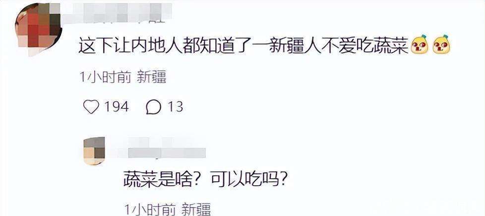 评论区的新疆网友们纷纷打趣,说这下全国人民终于知道了新疆人并不怎么吃蔬菜。有人甚至开玩笑说:这桌菜狠狠戳到新疆人的DNA🧬,家里聚餐就得这么来!