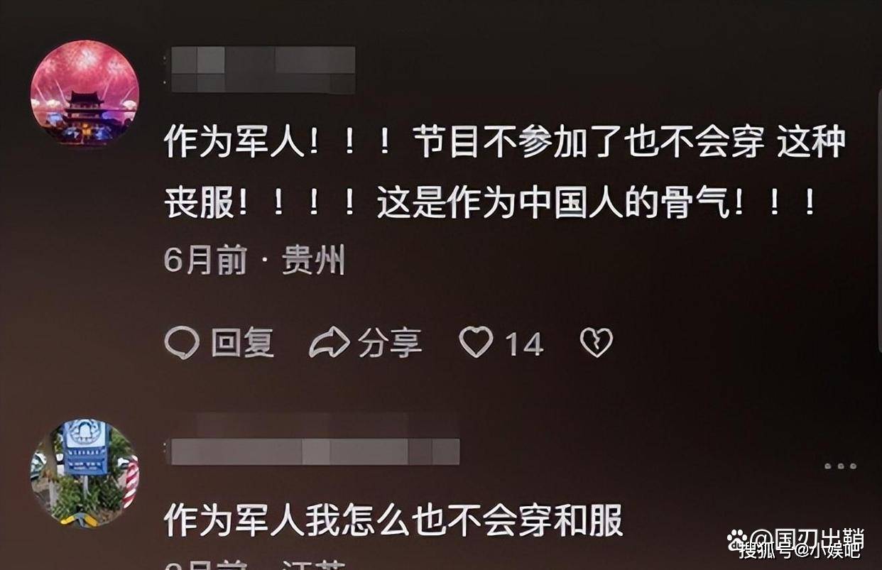 节目刚结束,他口碑就往下掉。很多人讲,当过军人就别穿那种衣服了。哪怕不参加活动了,以后也别穿。这是咱们中国人该有的态度。