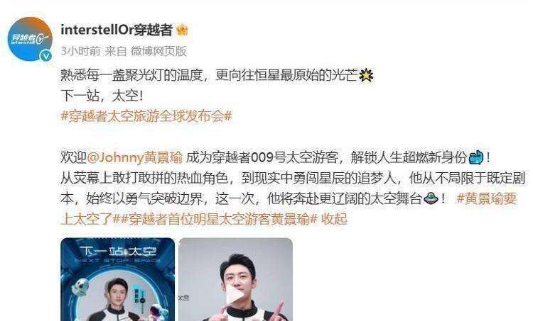 2026年1月22日,北京的穿越者载人航天科技公司宣布了一个重要消息:『黄景瑜』成为他们的第9位太空旅行者。这个消息一经传出,令许多人感到震惊。『黄景瑜』不仅在宣传片中亮相,还是满怀自豪地表达自己将搭乘中国自主研发的飞船,去探索浩瀚的星辰大海,这样的豪言壮语让人既惊讶又钦佩。