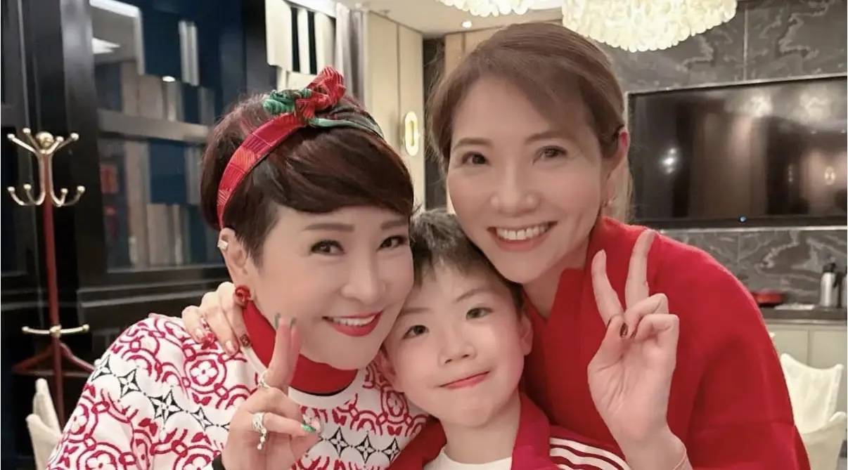 狄波拉的『打扮』始终如一,保留着经典的发型和标志性的发箍,尽管年纪渐长,但她依旧散发出一种别具一格的少女感,显得既活泼又不失成熟魅力。车婉婉也带着儿子来参加聚会,8岁的大儿子俊朗潇洒,与母亲和狄波拉合影时,仿佛祖孙三代的温馨画面,喜庆的氛围洋溢在每个人的笑容中。
