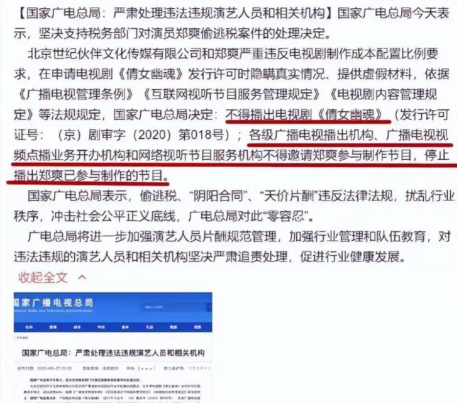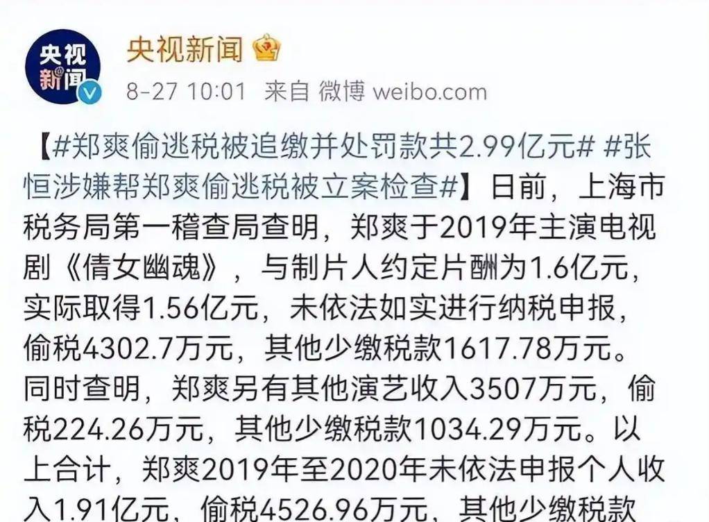 代孕一事成为压倒郑爽的致命一击,而税务部门也迅速介入调查,查实她通过阴阳合同偷逃税款,未依法申报个人收入1.91亿元,偷逃税款达4526.96万元。最终,郑爽被追缴税款、滞纳金及罚款共计2.99亿元。丑闻曝光后,各种连锁反应接踵而至。、今日霍州先后发文批评,广电总局发布封杀令,明确禁止她参与任何广播电视、网络视听节目的录制,她的作品也被禁止播出。多个品牌与她解约,华鼎奖更是撤销了她的三项荣誉,她的书籍被全网下架,个人及工作室的所有账号也都被封禁,彻底退出了『娱乐圈』️。