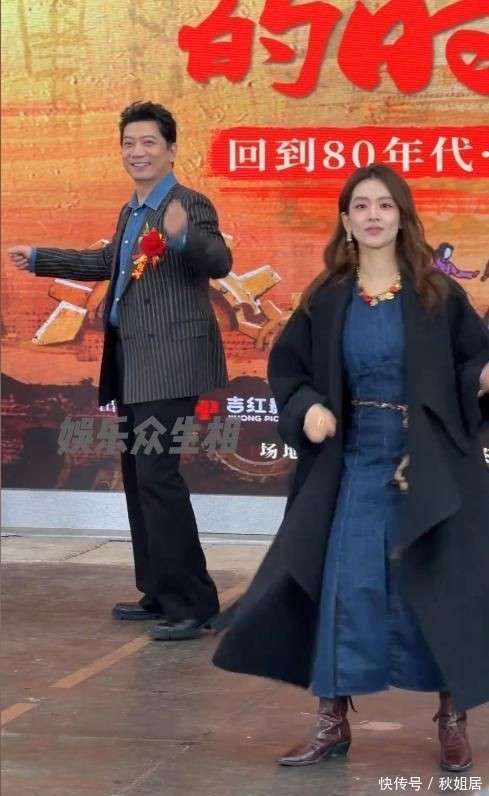 她穿了一条修身牛仔裙,外面叠穿了一件黑色长款大衣,头发自然垂落,略显松散、慵懒,缺乏足够的造型支撑力,整体看起来稍显缺乏精气神。她的底妆轻薄,唇色淡雅,虽然看起来清新,但却没有突显五官的立体感和面部的光影层次,削弱了她本该具备的辨识度,甚至不如剧中充满活力的状态。而与她形成鲜明对比的是梅婷。