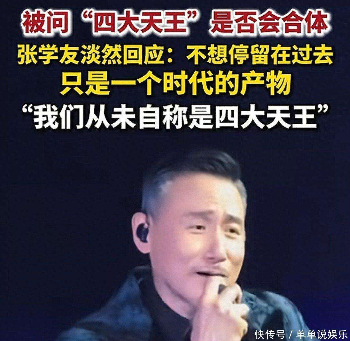 先来说说『张学友』的看法。1月24日晚上,他接受了香港媒体的采访,记者向他提了一个颇具挑战性的问题:你难道不期待有一天四大天王都步入暮年,再次同台吗?『张学友』显然有些不以为然,他笑着回应说:当年所谓的四大天王,不过是那个特定时代的产物而已,时过境迁,现在早已没有这个说法了。他说,现如今大家都各自忙于自己的事业,根本没有时间去怀念那些过往的标签。他坦言:我不想一直停留在过去,毕竟,我们也从未自诩为四大天王。他的话语中透出几分淡然,四大天王这个名号,无非是媒体的创造。『张学友』更是表示,他更希望这个名字永远停留在历史中,不愿去打破那段充满怀旧色彩的美好记忆。